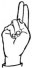 На ћирилици написано КОСТАДИН ЂАКОВИЋ састоји се из 15 слова [?]. Исписано ћириличном једноручном азбуком за глувонеме: